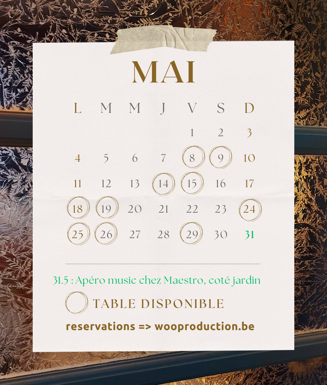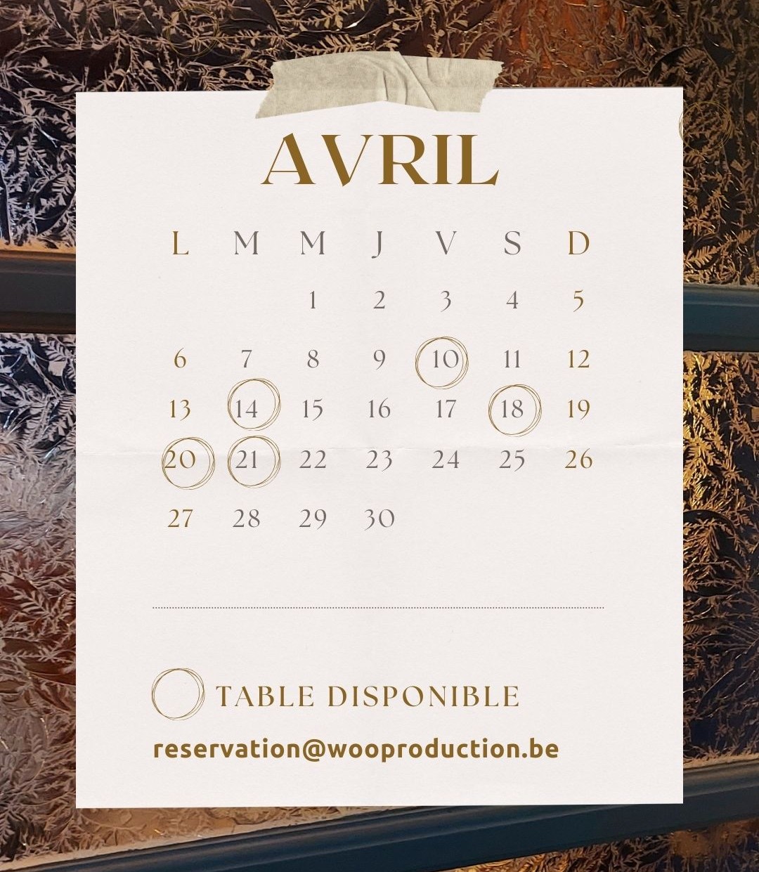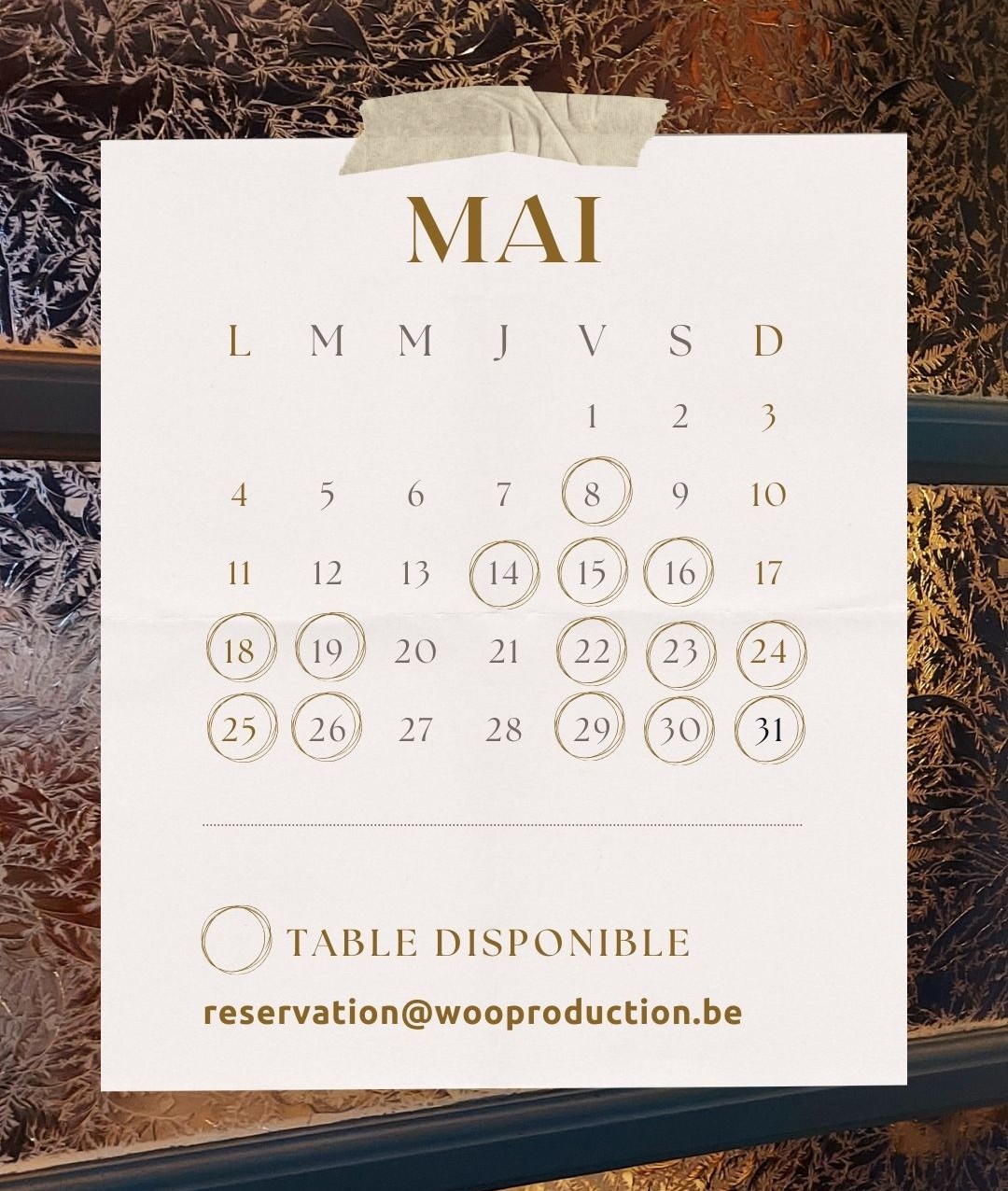 Notre table est uniquement disponible sur réservation anticipée